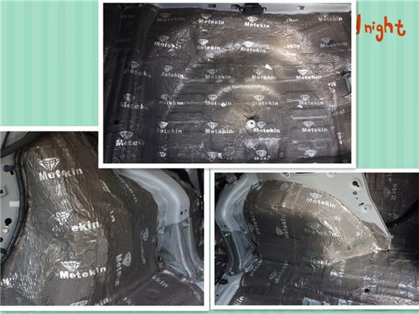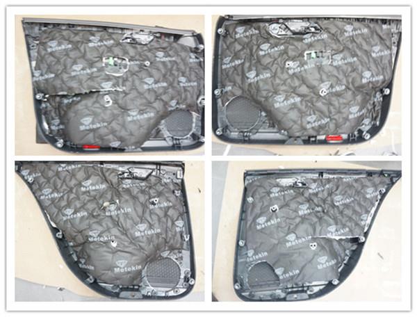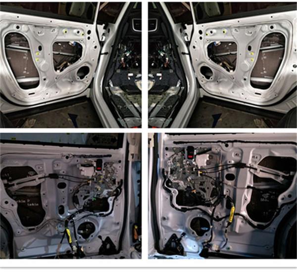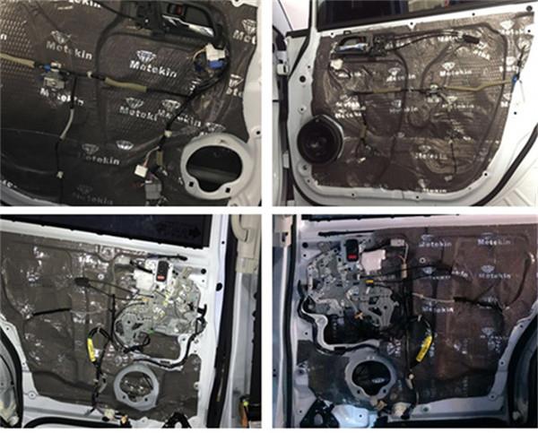 車門雙層隔音處理完畢,美特靜減震材料采用鋁基板及高純度丁基材料減震復(fù)合材料制成,環(huán)保高效、與鈑金貼合度好,防水阻燃,能長時間保持良好的隔音減震效果。