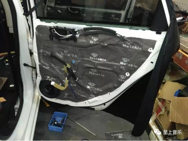 隔音前,師傅們做好清理工作,門板隔音可以說是不可省略的一個步驟,拆開原車門,把車門原來的全部換掉。車主看到原車門這么的簡陋,說風(fēng)噪怪不得這么輕易進(jìn)入耳朵了。