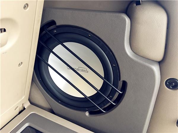 后聲場安裝的是歌劇世家IS262兩分頻,與前聲場的銜接天衣無縫,也照顧了后排乘客的音樂體驗。喇叭進行后門倒膜造型安裝,倒模安裝一方面能夠提高聲場喇叭的音樂品質(zhì),另外還有助于保證外觀的精美。