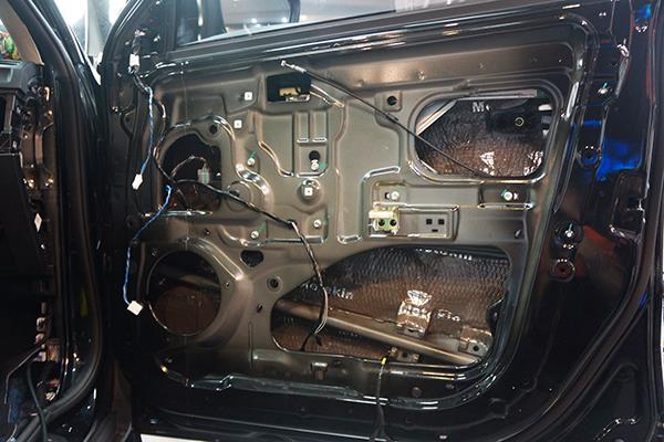 為了給汽車音響喇叭打造一個良好的工作環(huán)境,改裝技師采用美特靜隔音材料對車門做了雙層的隔音處理,這就像是在門板的周圍制作了一個箱體一般,一方面能夠減少噪聲對其的干擾,另外一方面還能夠有效的增加音樂的立體感。