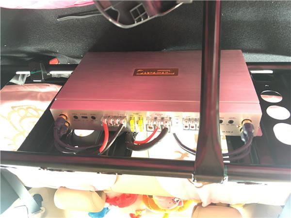 完整的音響系統(tǒng)少不了功放的推動和超低音對氣氛的渲染,改裝技師對施工工藝要求非常嚴格,哪怕是隱藏安裝的歌劇世家IA320.4功放都對線材進行了認真的連接和處理。