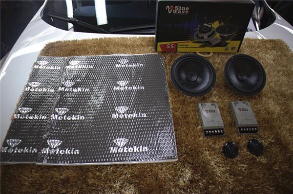 改裝技師采用了美特靜吸音棉對門飾板做了降噪處理,門板標準三層隔音,以更好地隔音降噪,提升車門喇叭音效。
