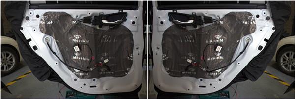 原車門板并無有效隔音措施,進行音響升級前,需進行隔音處理