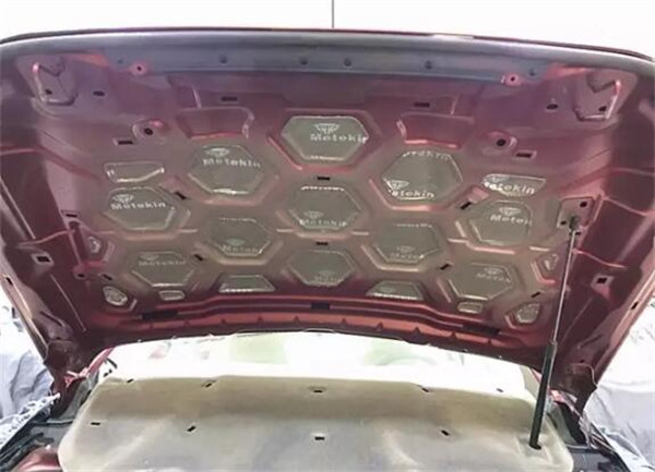 在引擎蓋上粘貼減震板,加強引擎蓋鋼板的強度,隔絕發(fā)動機的噪音傳遞。美特靜隔熱覆膜具有隔熱功能,能有效保護發(fā)動機艙蓋的面漆,避免長時間高溫使其面漆快速老化。