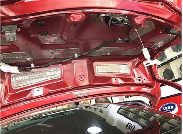 尾箱采用美特靜減震+吸音雙層隔音施工,削減來自尾箱的聲壓共鳴,有效阻隔鈑金共振異響,阻隔來自后輪轂噪音的傳播,汽車隔音效果非常明顯!