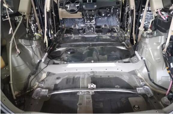 原車底盤拆開根本沒有什么隔音措施,為了更好的聽音效果,所以我選擇底盤+后備箱隔音