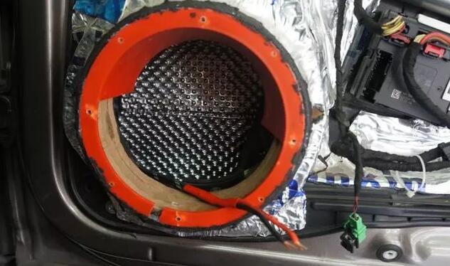 中低音喇叭安裝前,先在中低音喇叭背面貼上一層美特靜純音晶片,有效抑制門板的震動,為喇叭的聲效發(fā)揮提供百分之百的音質(zhì)提現(xiàn)。