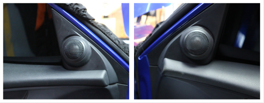 前門高音單元在前門三角板位置安裝,升級之后音質(zhì)清晰,層次分明,人聲和樂器聲變現(xiàn)更為出色。