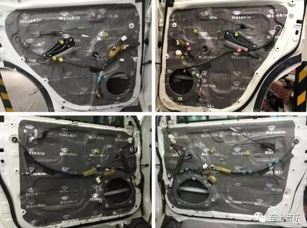 四門隔音使用美特靜減震板,先在車門里貼一層減震板,里層隔音做好后。