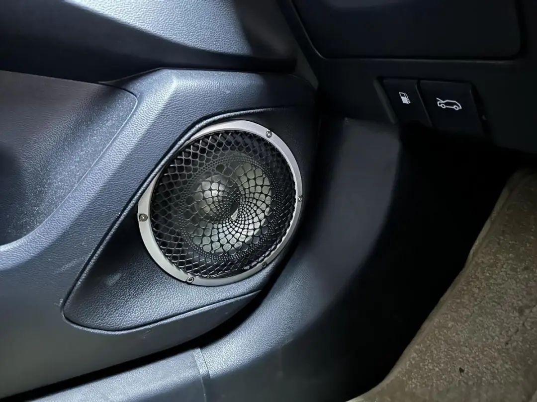這臺(tái)車選擇了一臺(tái)阿爾派M08S音源搭配DSP-IX10作為前級(jí)部分,為聲場帶來優(yōu)質(zhì)穩(wěn)定的音源輸出,同時(shí)還負(fù)責(zé)聲場調(diào)音等音源問題。前聲場選擇一套歌劇世家CS 73三分頻套裝喇叭,中音和高音單元通過倒模安裝在A柱上,獲取開闊的聲場,中低音單元安裝在車門原喇叭位,三頻之間相互銜接配合,為車主帶來非常好的聽音體驗(yàn)。