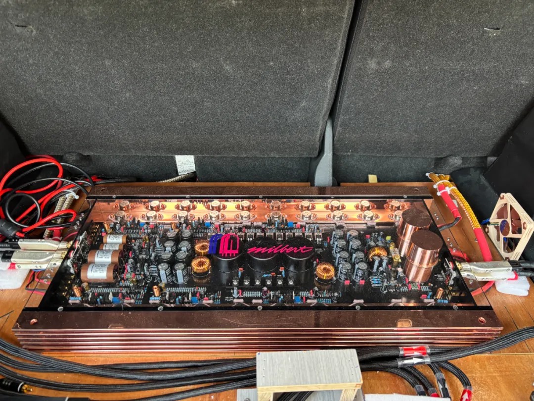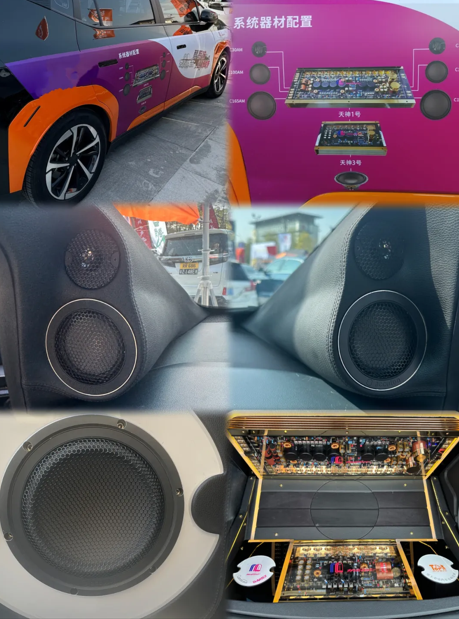 至上音樂車隊(duì)在音響設(shè)備的挑選上很是用心,選用了邁博特的神使系列與天神系列功放,以及艾卡頓的三分頻揚(yáng)聲器等音響產(chǎn)品。圖中呈現(xiàn)的是本次參賽車輛所采用的音響系統(tǒng)工藝。