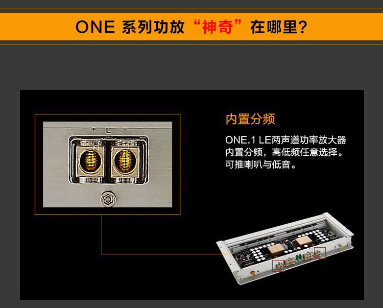 汽車音響功放ONE旗艦級產(chǎn)品摒棄復(fù)雜的對音色有著嚴(yán)重影響的前級電路,功率輸出而達(dá)到HI-end級效果。ONE系列功率放大器以兩個(gè)獨(dú)立單聲道功放的設(shè)計(jì)方式,聲音表現(xiàn)分離度好。