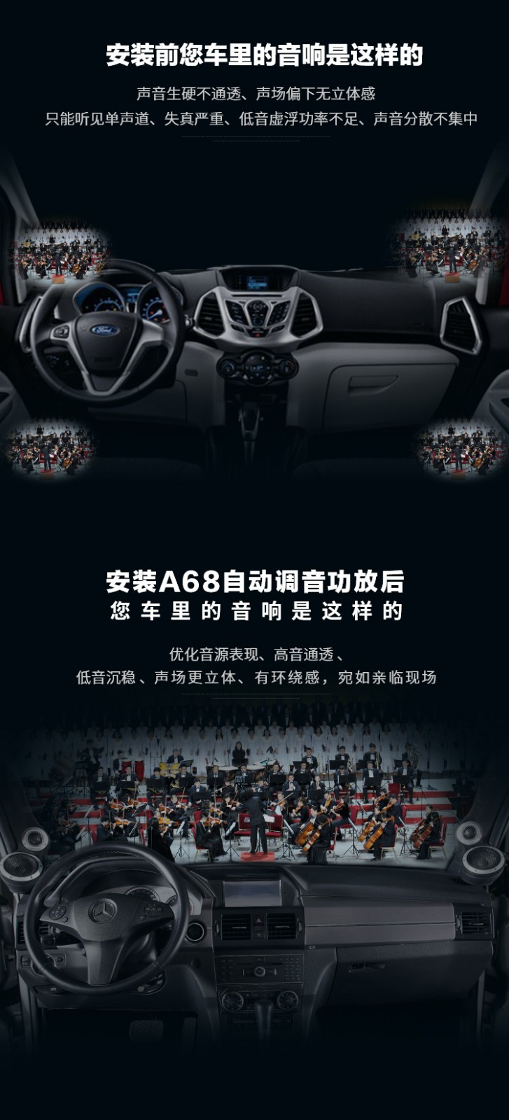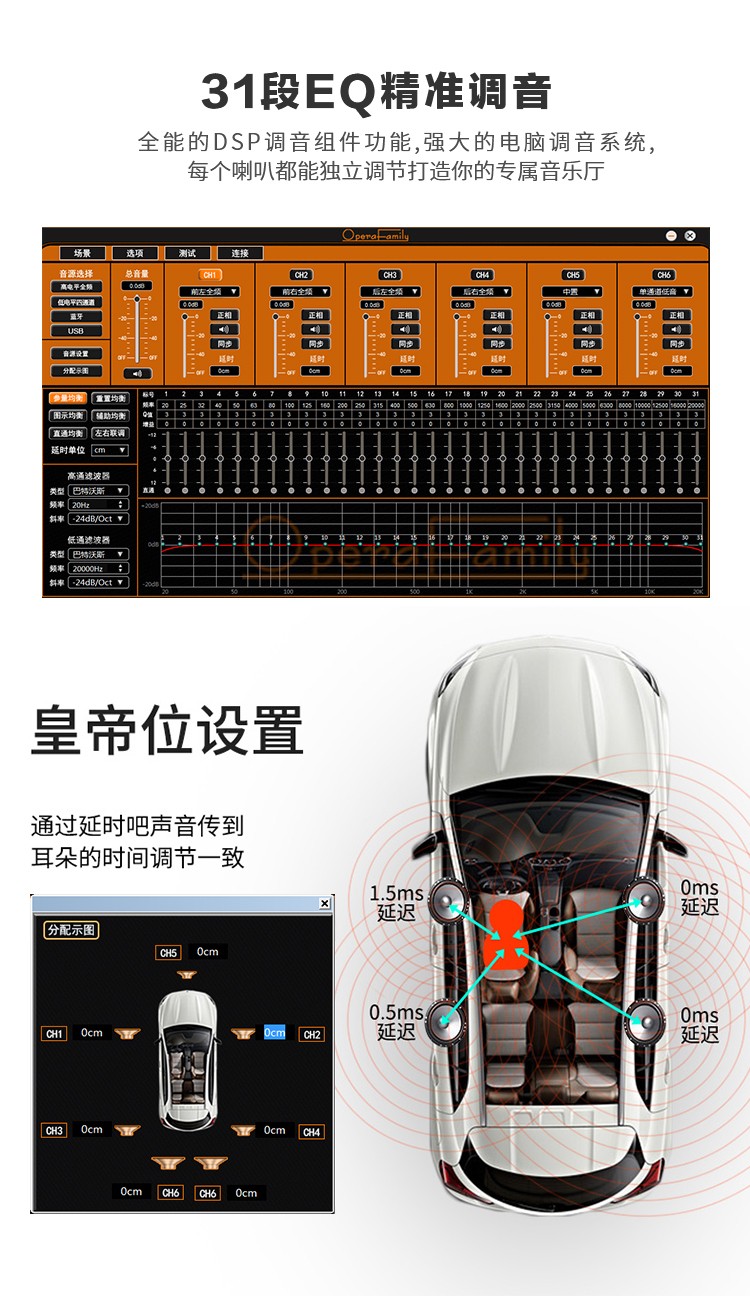品牌: Opera family/歌劇世家意圖系列 型號: A-68 輸出功率: 其他 輸出阻抗: 4歐姆 失真度: 0.01% 信噪比: 95dBA 汽車音響功放類別: A/B類 汽車音響功放用途: 推套裝喇叭 4進6出,31段EQ,延時、藍牙、4x85W、RMS、A/B類