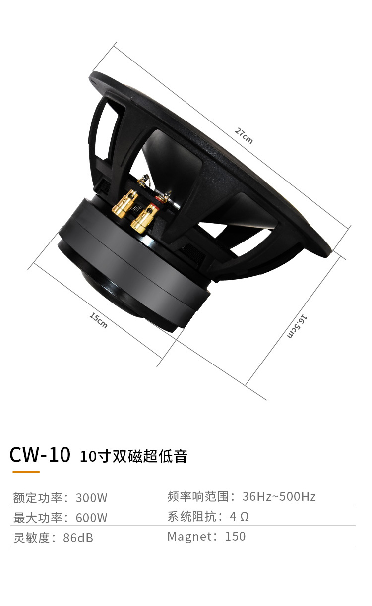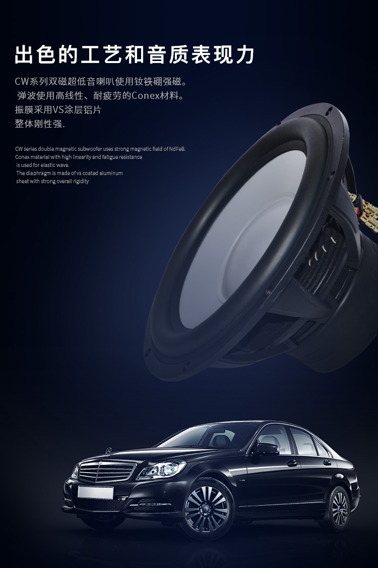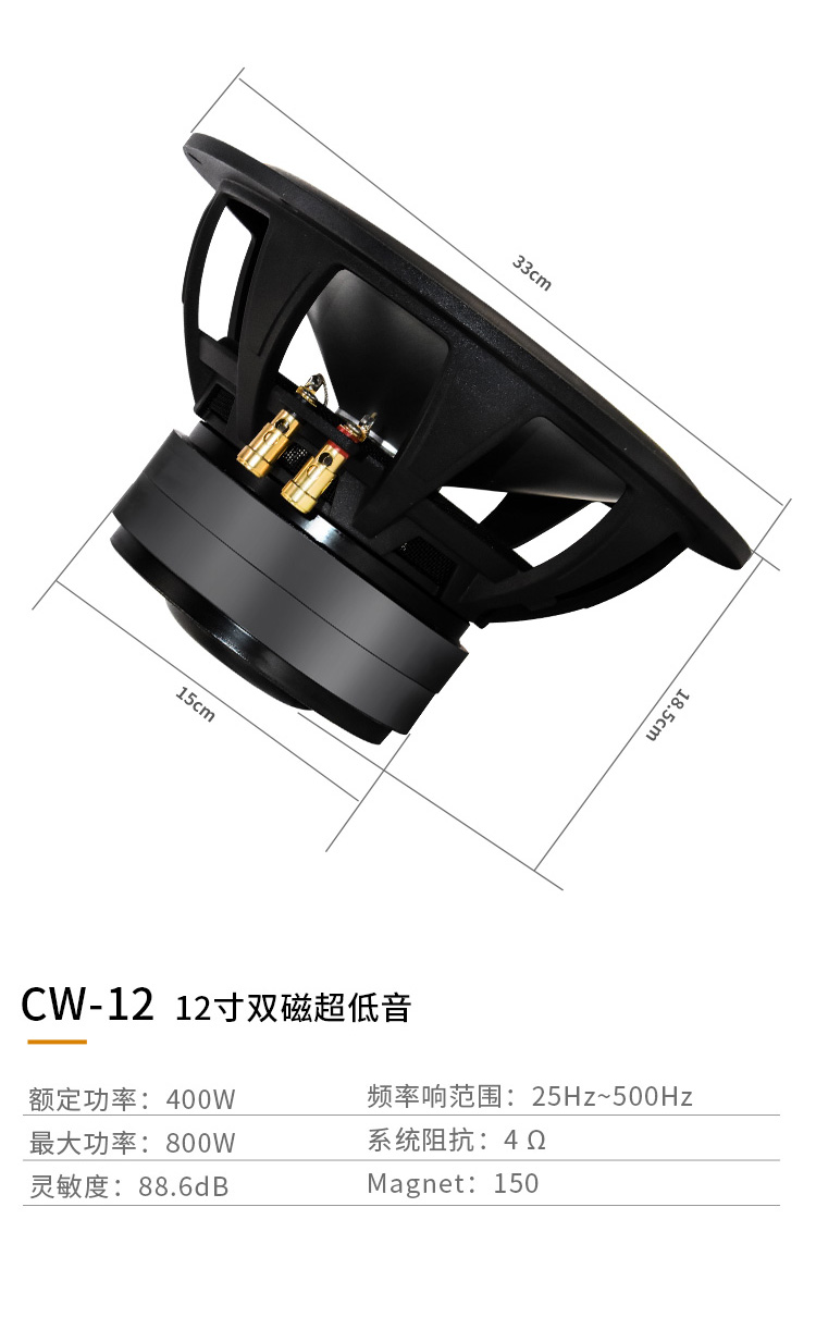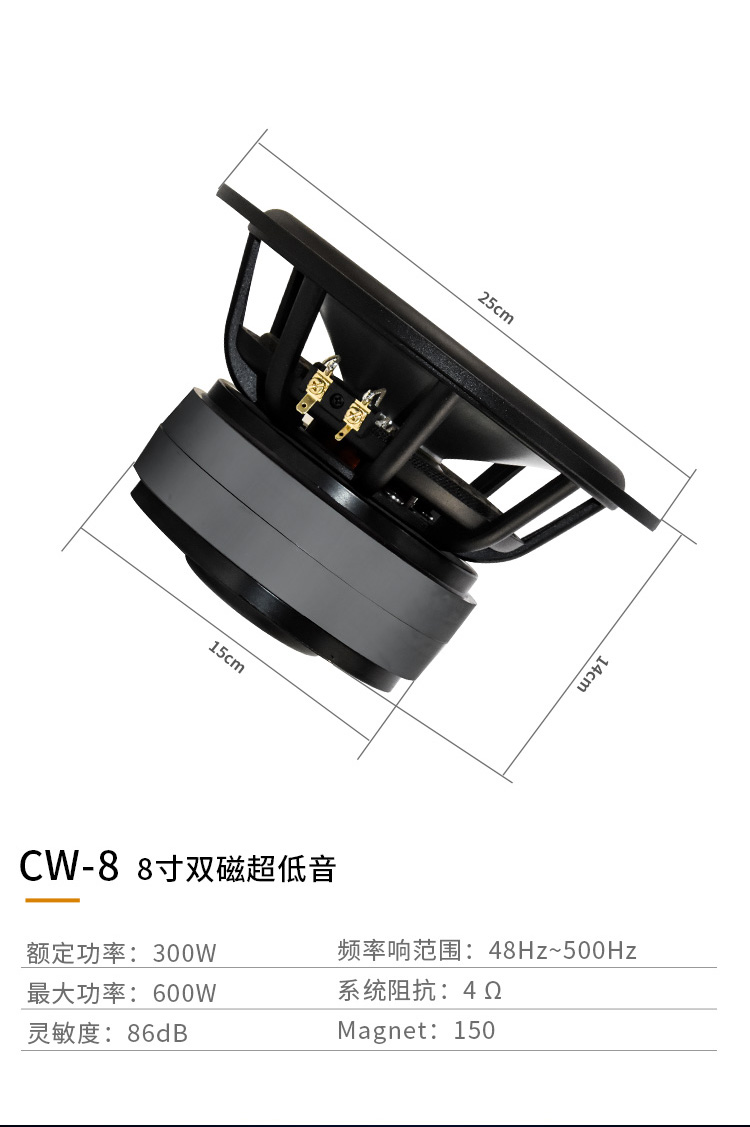 CW-8:8寸雙磁超低音,鋁鎂合金音盤,航空鋁盤架,300W CW-10:10寸雙磁超低音,鋁鎂合金音盤,航空鋁盤架,300W CW-12:12寸雙磁超低音,鋁鎂合金音盤,航空鋁盤架,400W