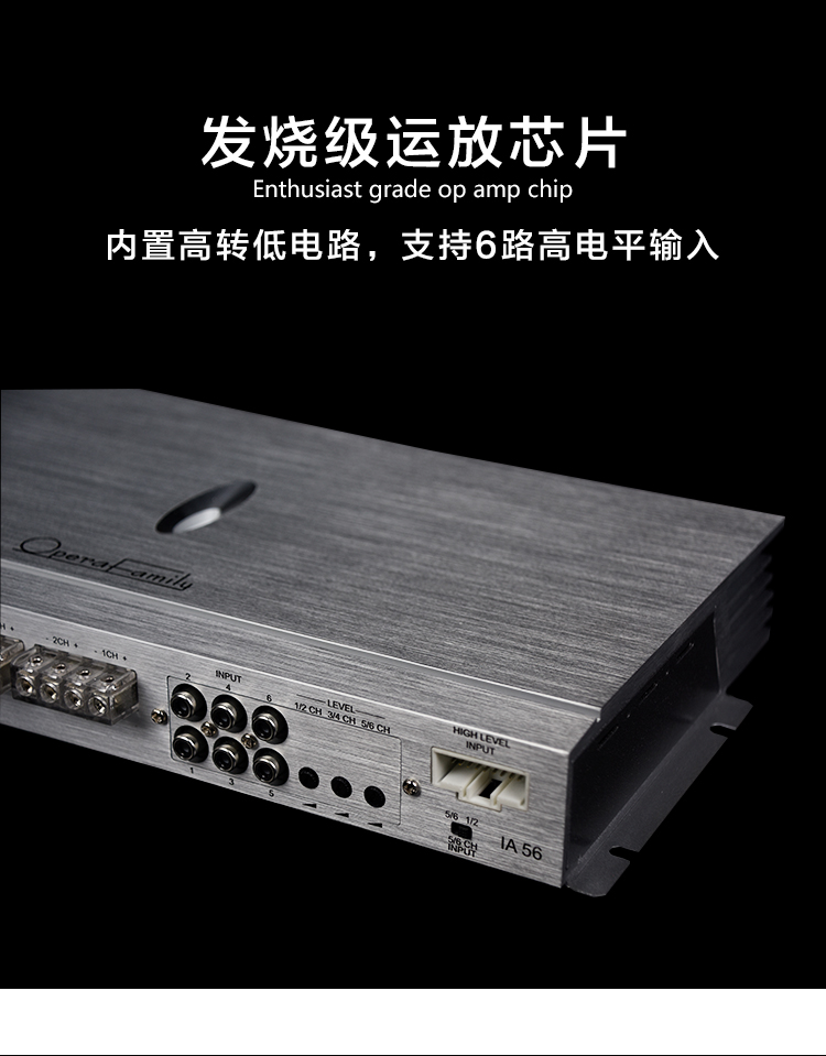 THD+N:<0.05% 信噪比:>90dB 頻率響應(yīng):10Hz-25KHz±1dB 輸入靈敏度:0.5V-5V 輸入阻抗:47KΩ 待機(jī)電流:<0.1A RMS輸出功率:6x90W 歌劇世家IA 56六通道功放:是一款前級(jí)放大器采用直通設(shè)計(jì),能避免高低通濾波電路干擾,使得聲音更干凈平衡;高純度銅鍍銀接線端子及RCA信號(hào)輸入端子;內(nèi)置高轉(zhuǎn)低電路,支持6路高電平輸入;采用發(fā)燒級(jí)運(yùn)放芯片。